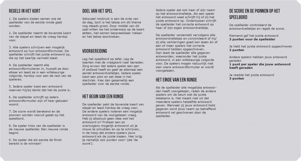 Doelgroep:  voor instellingen/scholen waar seksueel misbruik besproken wordt